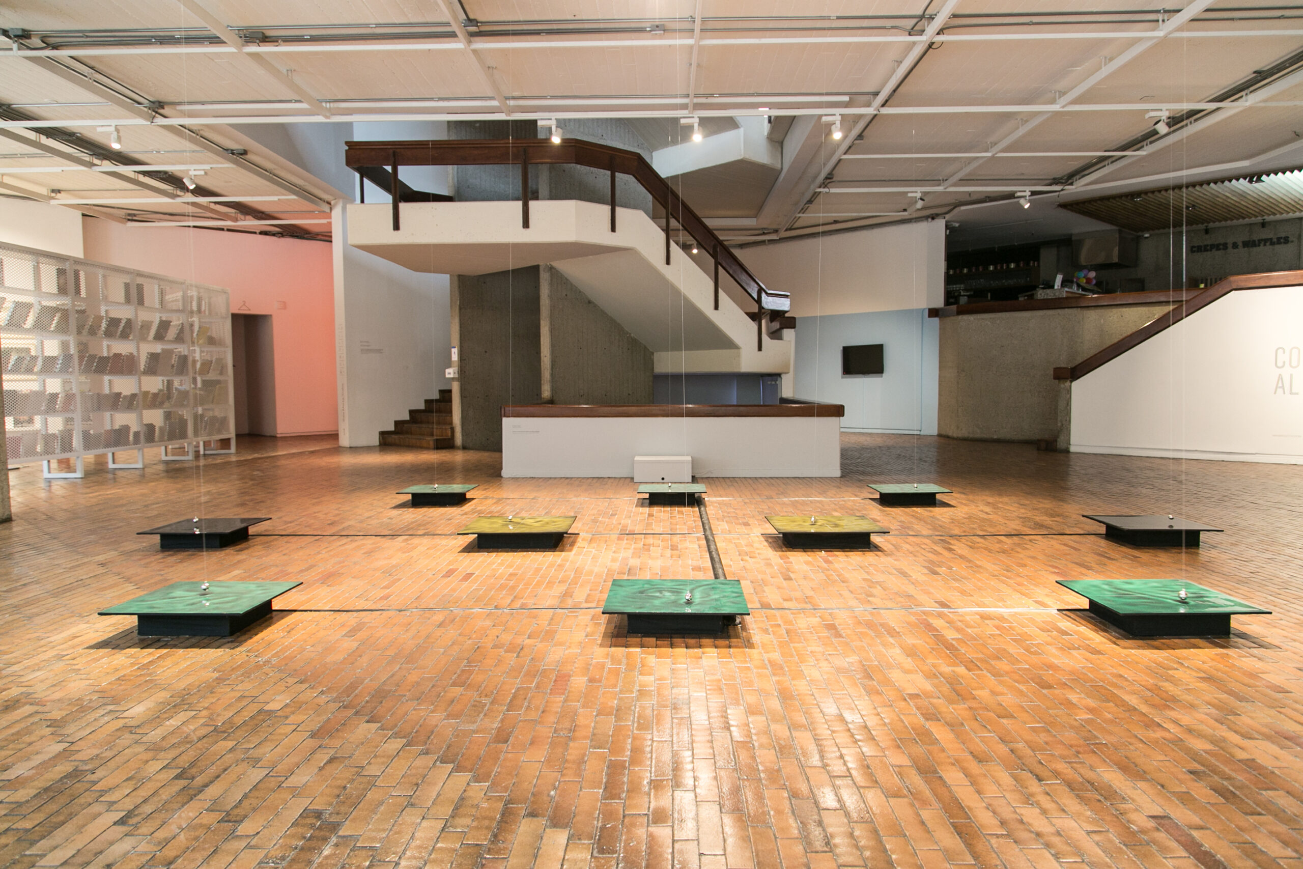 Estados vibracionales presenta tres obras in-situ concebidas en estrecha relación con el espacio del Museo. Están exhibidas como tres actos de una única obra, la cual ofrece una experiencia multisensorial; un ambiente inmersivo y participativo que puede ser escuchado, recorrido y visto tanto en el espacio como en el tiempo.