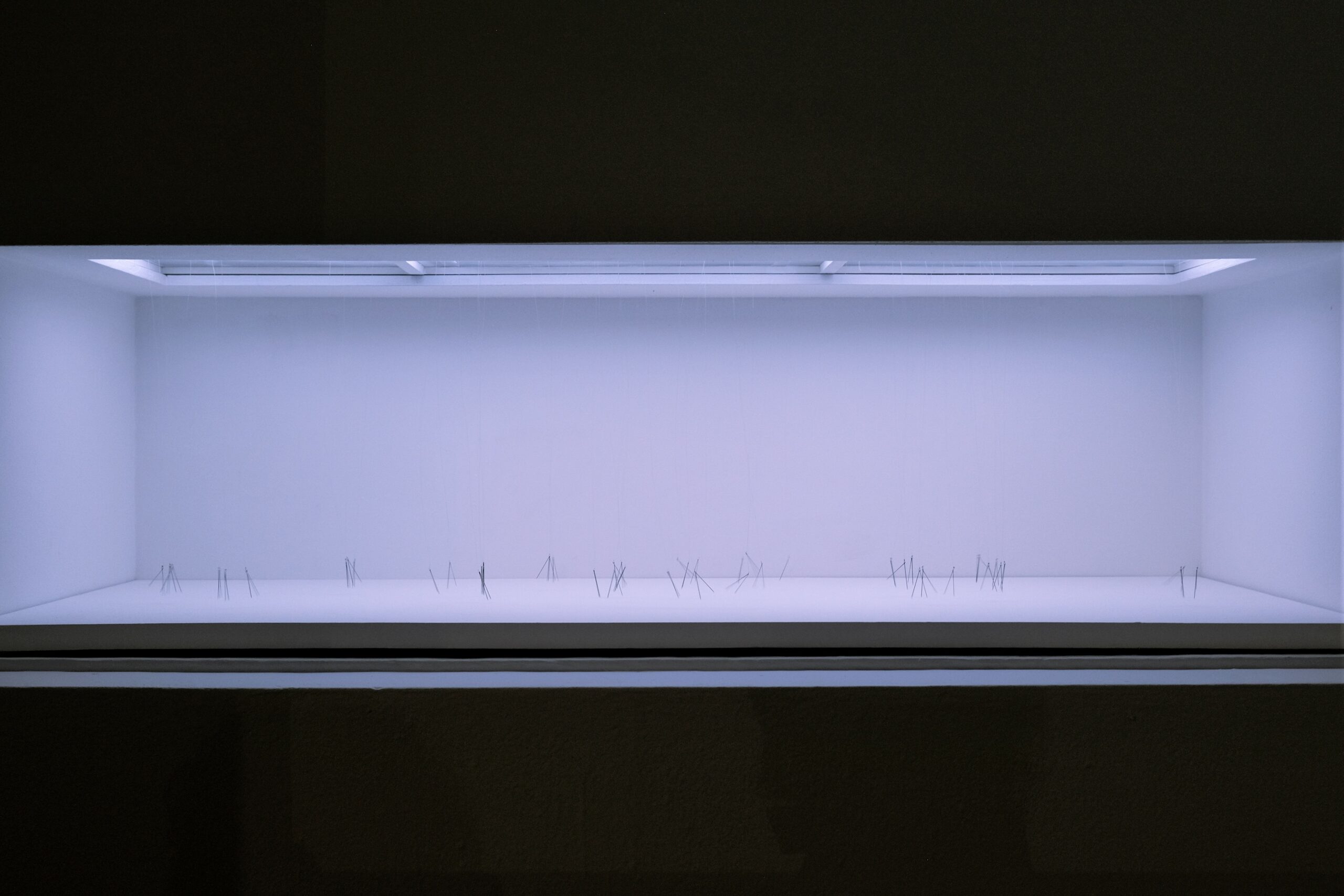 Ballet entrópico (2021) es otra obra basada en el mismo fenómeno físico: el electromagnetismo. Una instalación de agujas suspendidas se activa por medio de un campo electromagnético que provoca coreografías impredecibles de movimientos espontáneos. Estos objetos inanimados evocan, en sus acciones, comportamientos de sistemas naturales como un grupo de peces, una bandada de aves o una multitud humana.
