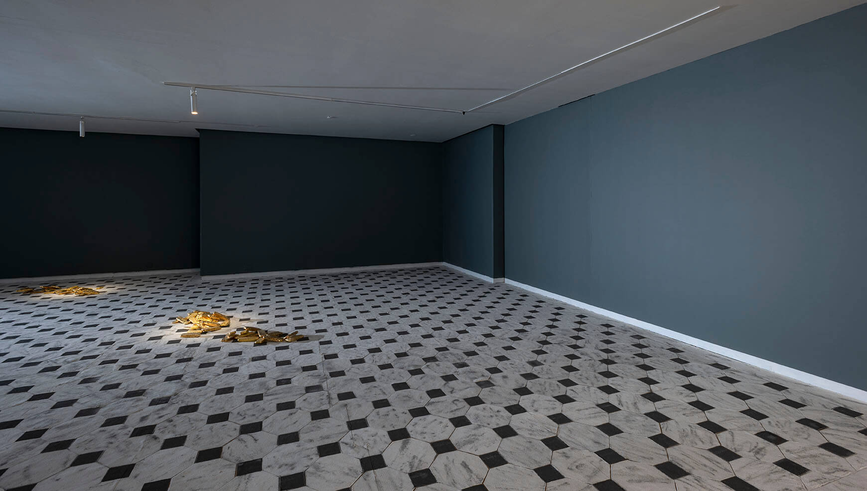 Territorio de poder, 2021, está inspirada en el piso neoclásico de La Sala Nacional de las Estatuas del Capitolio de Estados Unidos en Washington D.C., que fue asaltado recientemente. El piso es un elemento recurrente en el lenguaje plástico de Rojas. Grano, 1980, fue el primero que realizó el artista en el MAMBO, reconstruyendo el patrón de los azulejos que tenía la casa donde creció, como homenaje a sus orígenes mestizos.